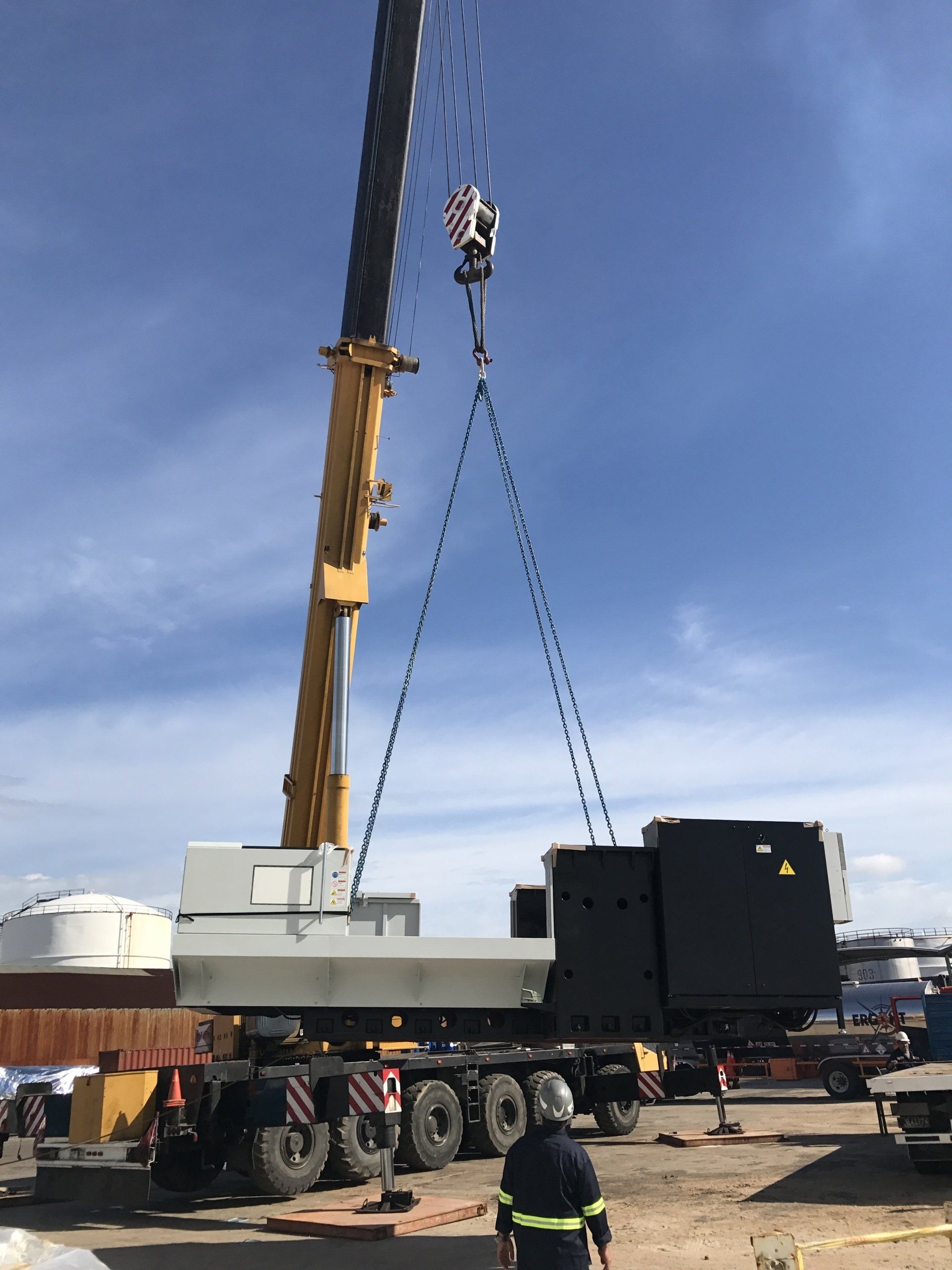 Nuestra empresa participo tanto del diseño, el design review, los ensayos en fabrica, transporte internacional y nacional, descarga, montaje y comisionamiento.