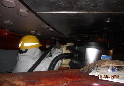 Nuestra empresa, en conjunto con la firma Envirovac de Canadá realizó la descontaminación de la unidad, limpiando y retirando los materiales contaminados cumpliendo con toda la normativa de seguridad medioambiental y laboral.